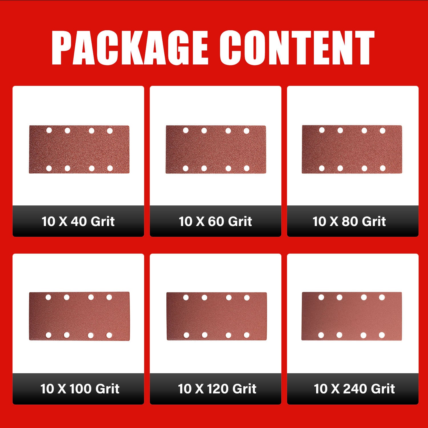 - [Package Detail] This set include 10 different grades sandpaper of 40/60/80/100/120/240 grits total 60pcs, each grits with 10pcs.