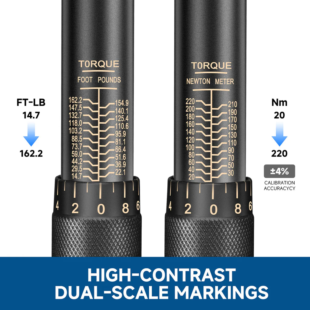 - [Laser-Etched Dual Scale]Features dual-scale, high-contrast laser markings for easy reading, ensuring accurate torque application every time.