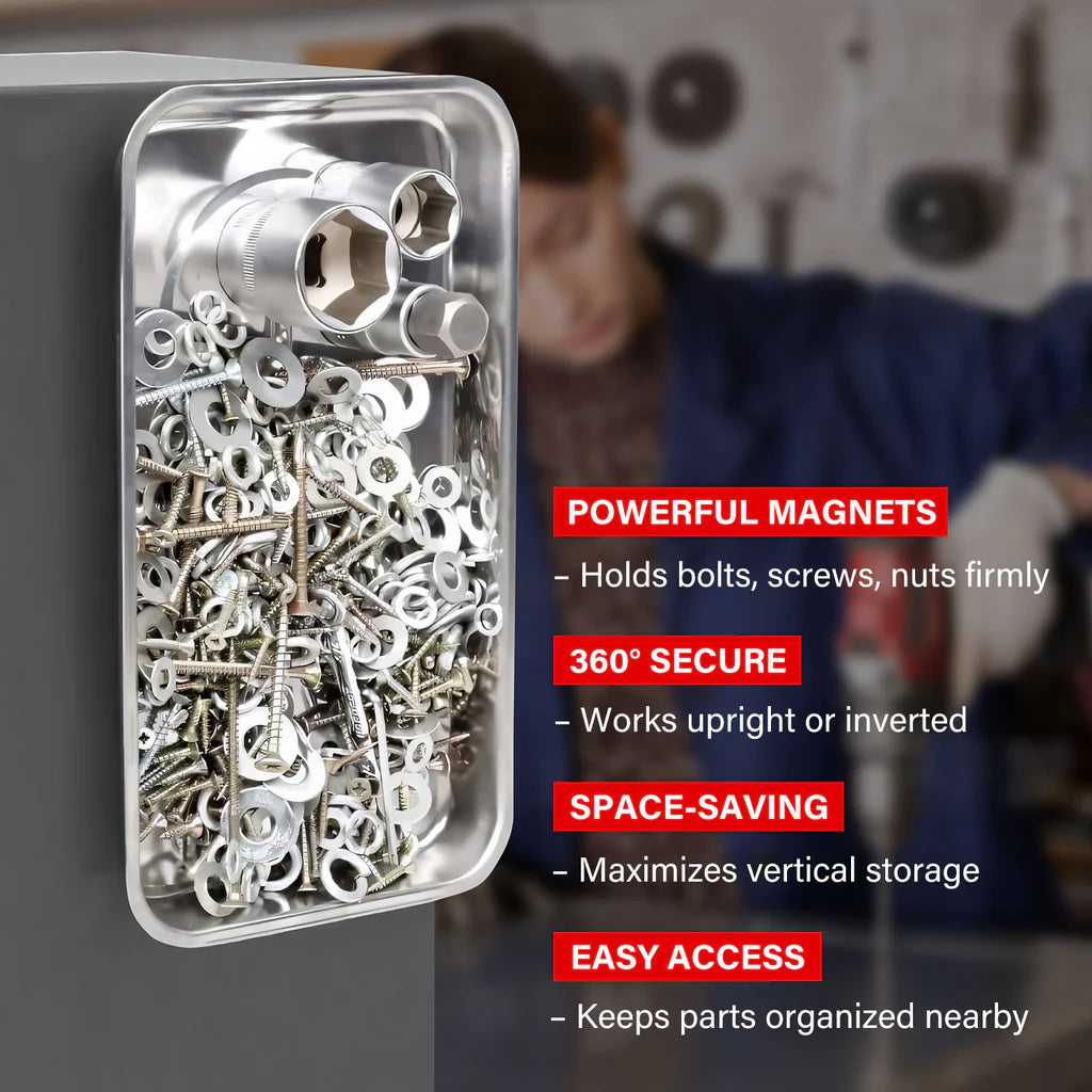 - [VERSATILE MOUNTING OPTIONS]Easily attach these magnetic trays to toolboxes, metal cabinets, vehicle bonnets or any ferrous surface for convenient parts access during projects.