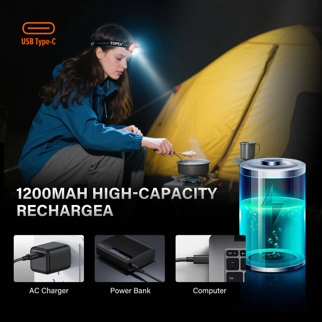 TOPEX Headlamp Rechargeable Head Torch, 1000 Lumens Waterproof LED Headlight with Red Lights, 11 Light Modes, Motion Sensor Control for Camping, Hiking, Outdoor