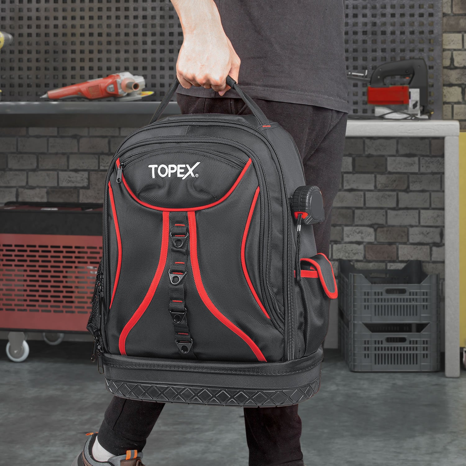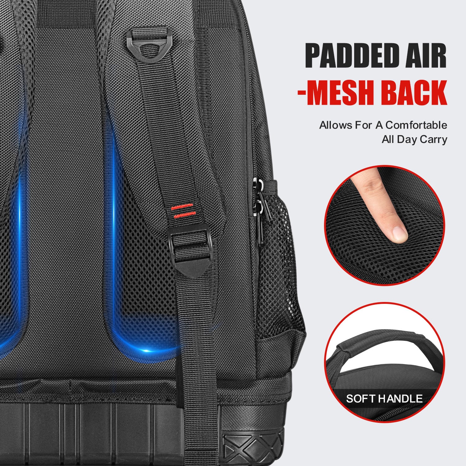 • [Tough Waterproof Moulded Bottom] The backpack's moulded plastic bottom provides added strength and protects your tools from moisture, keeping them safe and dry in various weather conditions.